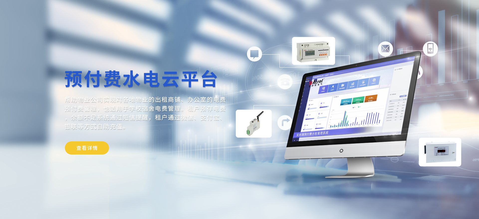 安科瑞提供的解決方案包括Acrel-EIoT能源物聯(lián)網(wǎng)云平臺(tái)、變電所運(yùn)維云平臺(tái)、安全用電管理云平臺(tái)、環(huán)保用電監(jiān)管云平臺(tái)、智慧消防云平臺(tái)、能源管理云平臺(tái)、工業(yè)企業(yè)能源管控平臺(tái)、遠(yuǎn)程預(yù)付費(fèi)云平臺(tái)、餐飲油煙監(jiān)管云平臺(tái)、電動(dòng)汽車(chē)/電瓶車(chē)充電樁收費(fèi)管理云平臺(tái)、電力監(jiān)控/無(wú)線測(cè)溫系統(tǒng)、電能質(zhì)量治理系統(tǒng)、電氣火災(zāi)監(jiān)控系統(tǒng)、消防設(shè)備電源監(jiān)控系統(tǒng)、防火門(mén)監(jiān)控系統(tǒng)、應(yīng)急照明和疏散指示系統(tǒng)、智能照明控制系統(tǒng)、醫(yī)用隔離電源絕緣監(jiān)測(cè)系統(tǒng)等,幫助用戶(hù)實(shí)現(xiàn)能源智能化、可視化、精細(xì)化管理,提高用能效率和用能安全,為企業(yè)節(jié)能降耗和實(shí)現(xiàn)能源數(shù)字化建設(shè)提供數(shù)據(jù)服務(wù)。